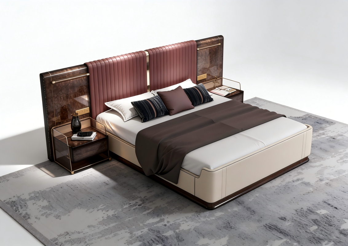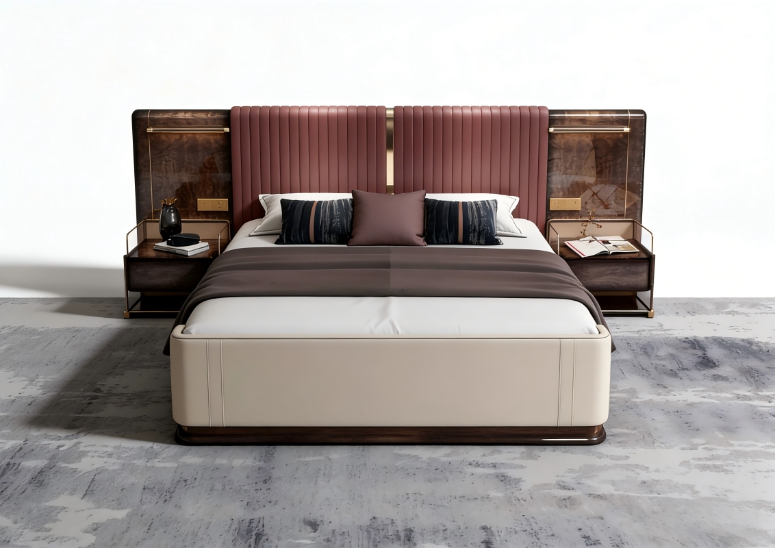 Italian Designer Wide-Profile Bed ?? Italian-Style Genuine Leather Bed ?? Light Luxury Modern Master Bedroom Bed ?? High-End Luxury Villa Bed ?? Floor-Standing Design