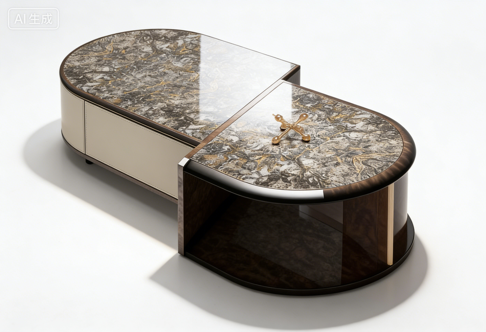 Materials: Beech wood frame + “Platinum Diamond” natural luxury marble + Wood veneer finish + Top-grain cowhide leather