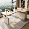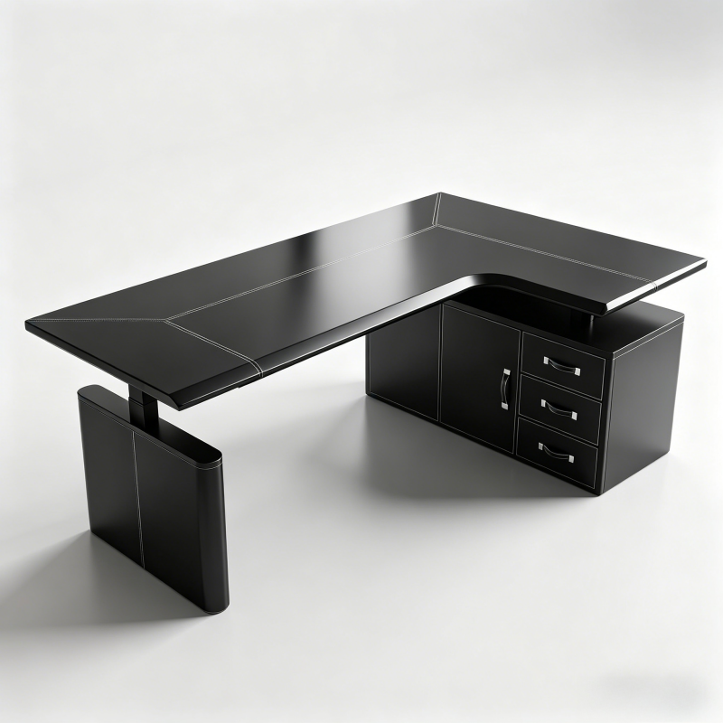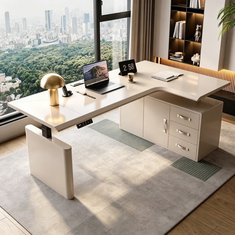 Corner electric height-adjustable desk modern minimalist saddle leather belt storage cabinet office desk high-end workbench computer desk