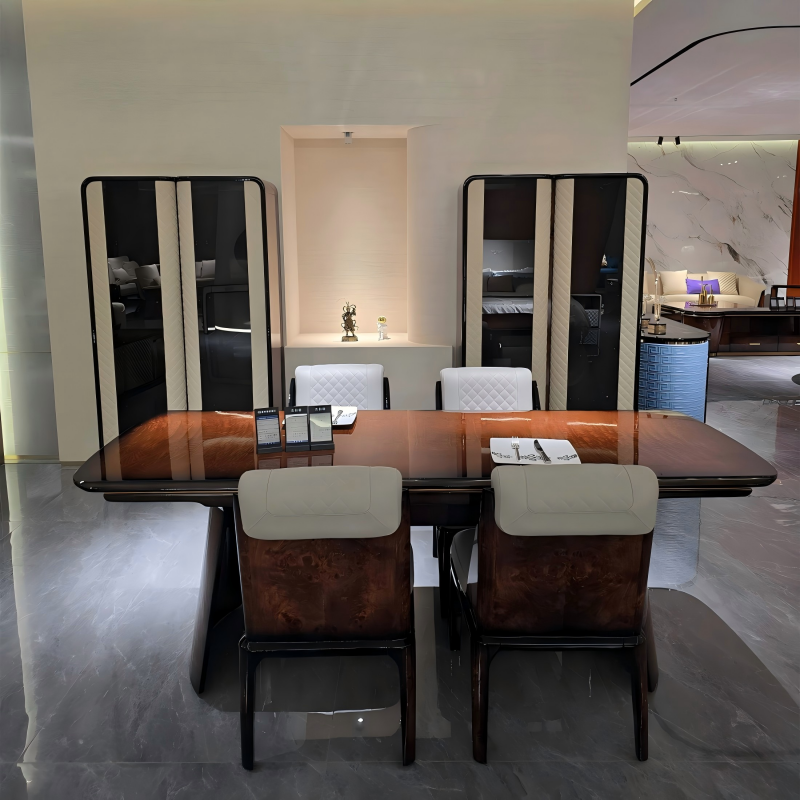 Solid Beech Wood Frame + High-Gloss Lacquer Finish + Gold-Plated Stainless Steel Accents