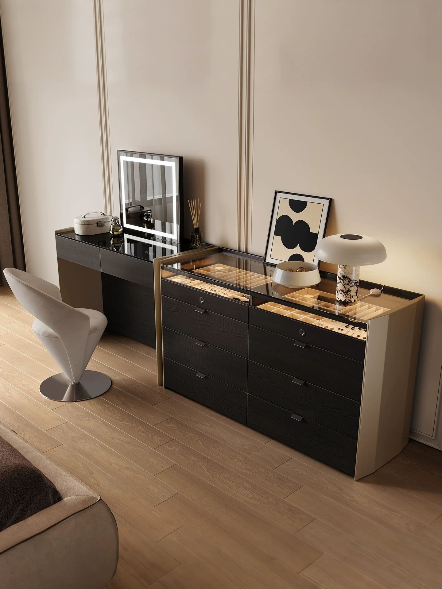 Italian light luxury eight-drawer cabinet and dressing table combination, high-end feel bedroom bed end fingerprint lock jewelry storage