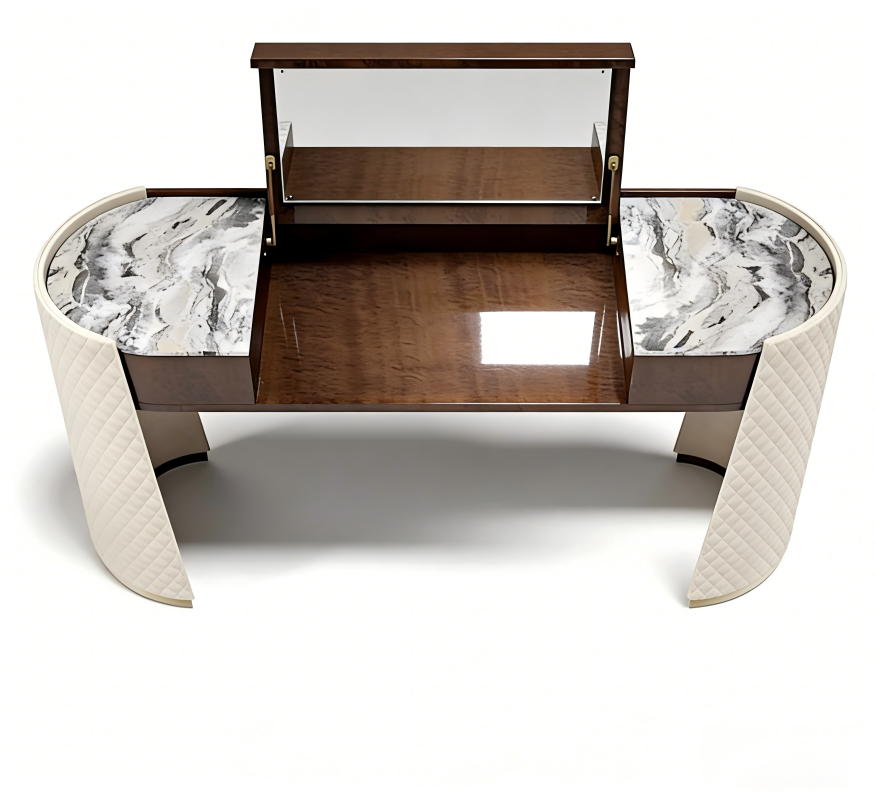 Vanity Table ?? Italian-Style Light Luxury Dressing Table with Padded Finish, Ideal for Small Apartments and Showrooms, Featuring a Marble Flip-Top Design