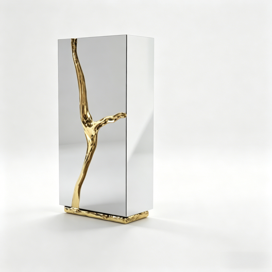 Materials: Burl Wood Veneer + Leather + Metal Hardware